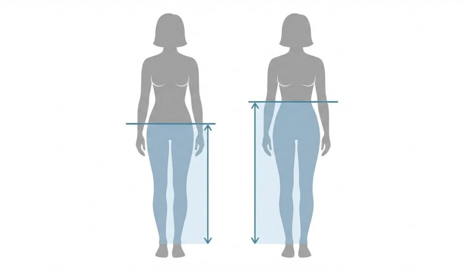腰位置が上に移動して見えるから。