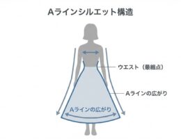 錯視と重心分散のメカニズム Aラインとは、 ✔ 上半身がコンパクト✔ ウエストから裾に向かって広がるシルエット …